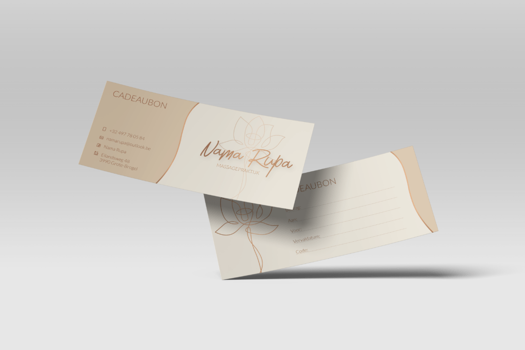 Ontdek het elegant logo voor Nama Rupa, de massagetherapeute die streeft naar rust en welzijn. De bijbehorende visitekaartjes en cadeaubonnen…